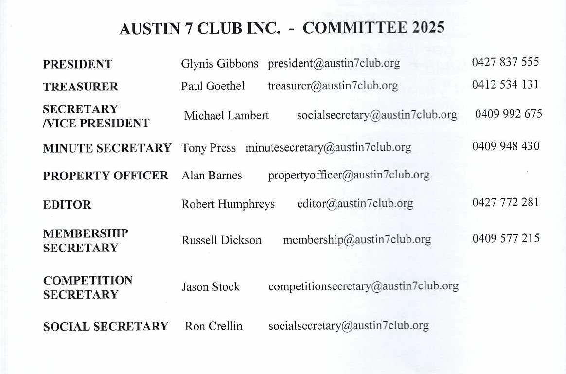 Austin Seven Club Committees