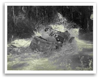 Park Orchards 1959. Geoff Taylor's Austin 7 special crossing Deep Creek with Tony Press navigator. Photographer David Lowe.