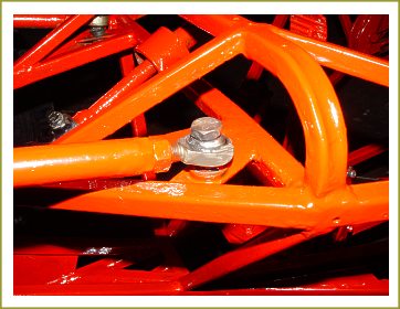 The Front End on my car is really what makes this car tick. When I built the first of this type of car I'd wanted something that would actually steer. At the time some cars had beam axles, ala Austin 7 and Ford 10. Others built by the likes of Dale Shaw & Barry Hudson used double wishbones. Although we all knew something of what I suppose is the current English design, like Syd Hirst's of NZ, nobody had done anything with them here. Certainly not with a rear engined car. The difference using a rear engine configuration like the VW meant that I was fairly limited in what I could achieve with the rear end travel so the next best thing was to get the front to do all the travelling. Right from the start I wanted to use components from very ordinary cars so spares wouldn't be a problem. I'd fixed the idea of a strut type in my mind, and after some searching found that the KE30 type Corollas had pretty much all I needed. Cheap & plentiful. |