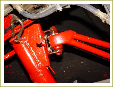 The Back End on my car was one of the things that took a bit of getting right. Close inspection shows that I've used Kombi reduction gears, called in the trade 'Droppers'. My first car was essentially all Kombi, and the whole concept arose, not because I knew anything about 'torque reaction', but because I owned a 'real' Kombi and I knew how good the traction was on that car. In fact, I used to practice getting stuck in the mud before I knew anything about trials. At least the trials 'legitimised' this foolish practice. Torque reaction is the key, and the droppers promote quite violent torque reaction which attempts to lift the car, in turn pushing the tyres down hard on the ground and thus increasing traction. This is actually a momentary thing but it lasts until the limit of travel is reached, quite often long enough to get the best of a section. Letting the car squat by applying the fiddle brakes, then using the throttle to make the car jump is a great technique to master. A side benefit of the droppers is the 4" extra ground clearance. |